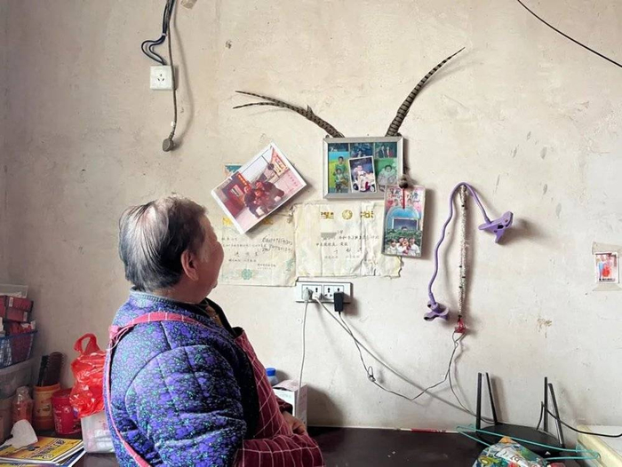 胡菊开71岁。老头死了10年,她也就一个人住了10年。担心老人在家发生意外,在佛山打工的大儿子给家里装上了两个监控,一个对着大门和院子,一个对着门外的土坡和鸡窝。大儿媳严梦枝在武汉一家早餐店打工,下午两点收了工就对着摄像头朝婆婆喊话。