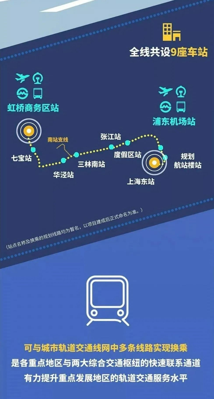 未来,在上海东站乘坐机场联络线,两站即可达上海浦东国际机场。同时,上海东站车场规模将按照14台30线进行规划控制,规划接入沪通铁路(衔接南北沿江铁路)、沪乍杭铁路,通过市域线网络转换,接入沪苏湖铁路、沪杭城际并衔接沪宁、沪杭通道。同时,规划预留沪舟甬铁路通道的接入方式。
