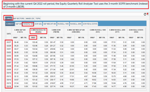 图3:芝商所股票指数季度移仓分析工具