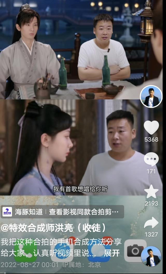 这些视频中,通过AI换脸的形式,把影视剧中的主要人物换成了“特效合成师洪亮”本人。