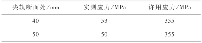 表 7 尖轨薄弱断面轨底应力