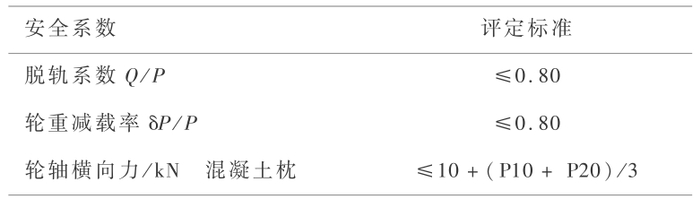 测试案例如图 21 所示,对应安全评判标准如表 4 所示、测试参数限值如表 5 所示,测试时道岔的测点布置如图 22 所示,安全性指标实测最大值如表 6 所示。