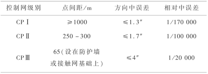 在平面高程控制网分级精度控制,平面高程控制网布设,轨道坐标网及高程控制网测量观测,轨道坐标网测量数据采集、处理、平差,建筑物及轨道板精确定位技术等项取得创新成果,轨道控制网精度指标如表 3 所示。