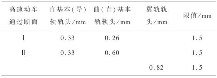 表 8 钢轨和翼轨轨头动态横向位移