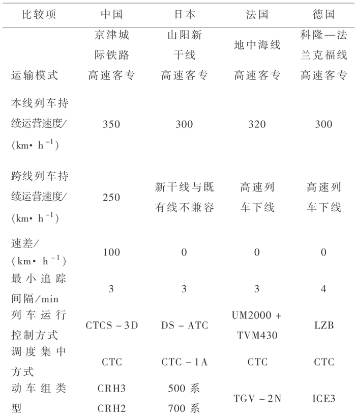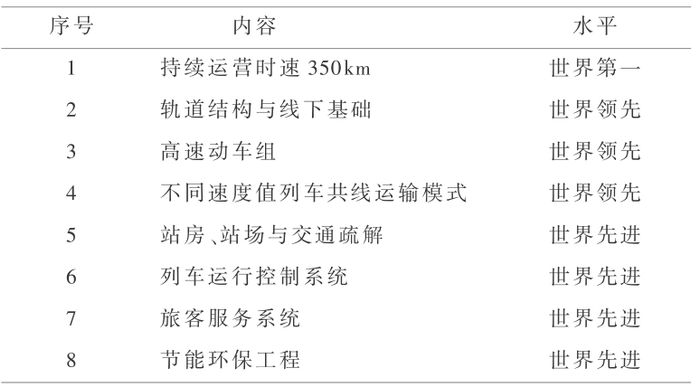 与世界高速铁路代表线路比较,京津城际铁路整体达到世界领先水平,其主要标志如表 2 所示。