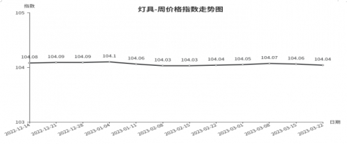 本周,灯具类周价格指数收于104.04点,环比下跌0.02点,跌幅0.02%。从二级分类看,工艺灯及灯饰、家居照明类价格指数均出现小幅下降,分别下跌0.20、0.01点;灯具配件类价格指数小幅上涨0.03点。
