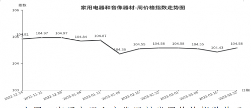 本周,家用电器和音像器材类周价格指数收于104.58点,环比上涨0.15点。从二级分类看,音像器材、厨房电器、热水器、个人生活电器、净化电器类分别上涨0.43、0.35、0.19、0.05、0.03点,制冷电器、家居电器类分别下跌0.08、0.03点。