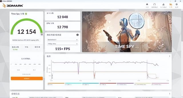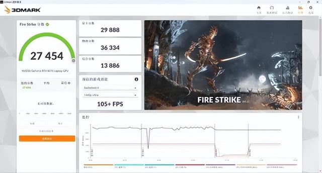 跑分方面,移动端4070在3D Mark中两个项目得分分别是Time Spy的12048和Fire Strike的29888分。