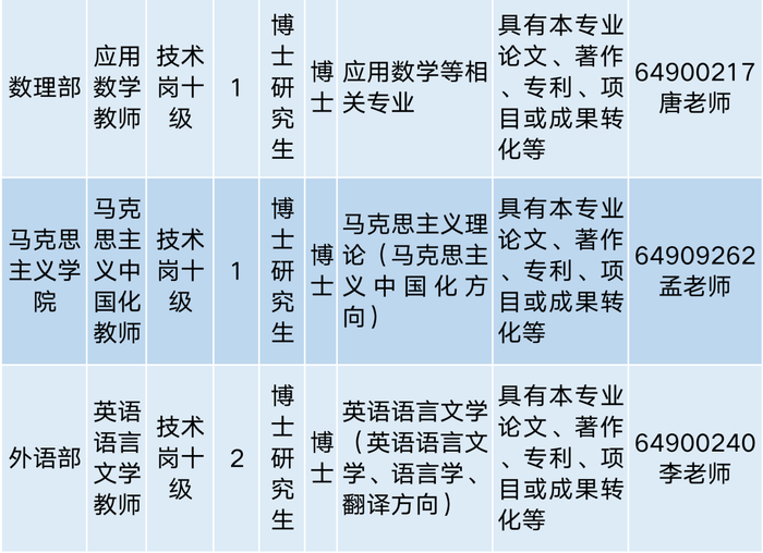 2023年学校计划公开招聘专任教师岗位20个、辅导员岗位10个,招聘单位采用综合考察的招聘方式,其中仅辅导员岗位组织专业考试,各招聘计划岗位数量、要求、联系方式等信息,请看以下表格: