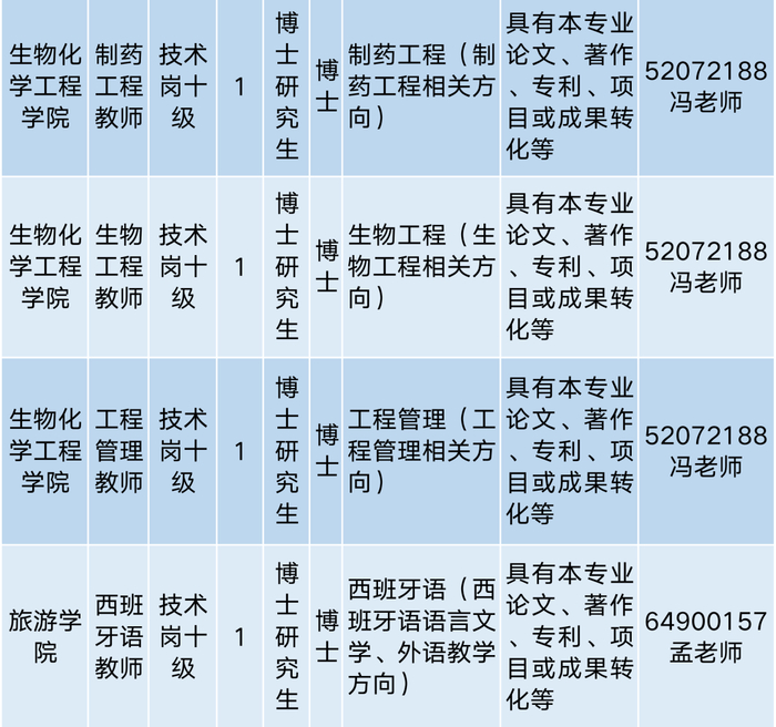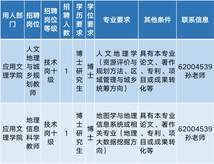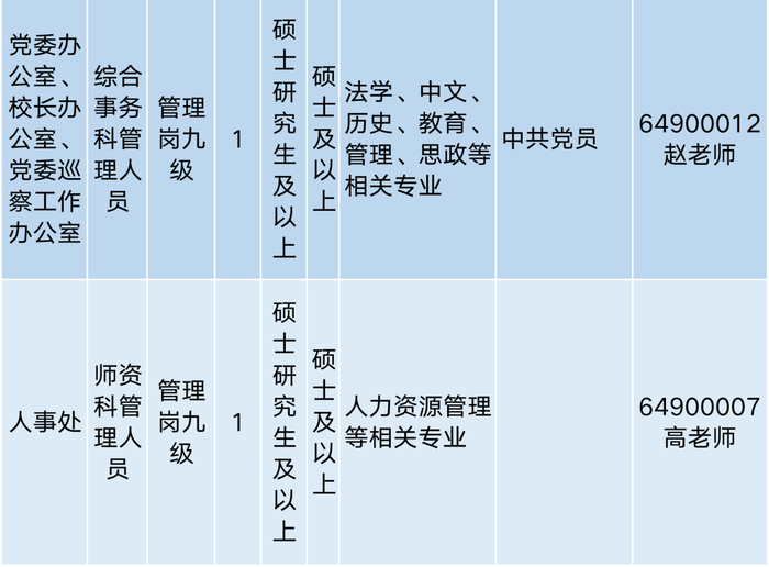 招聘单位采用综合考察的招聘方式并组织专业考试。各招聘计划岗位数量、要求、联系方式等信息,请看以下表格: