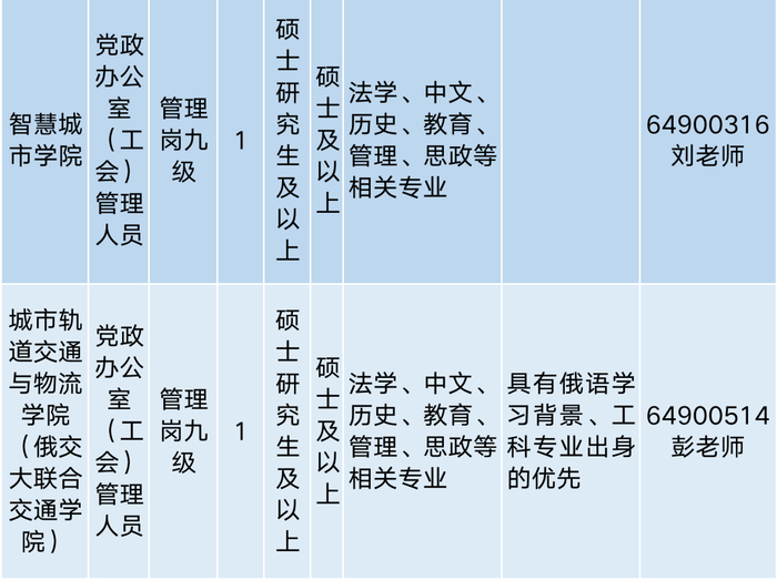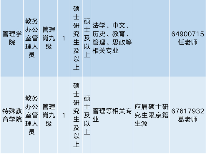 2023年北京联合大学招聘各类型岗位66个,其中普通教师岗位34个,高水平、高技能教师岗位4个,辅导员岗位11个,非教师专业技术岗位5个,管理岗位12个,各招聘计划岗位数量、要求、联系方式等信息,请看以下表格: