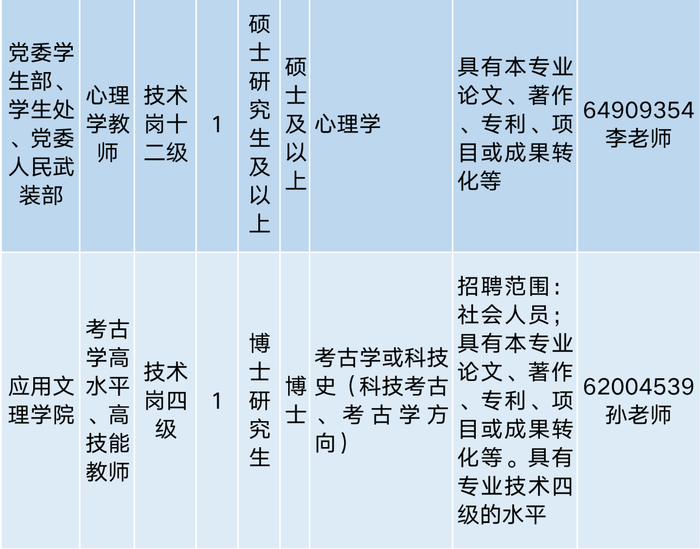 学校招聘政策和安排等问题请咨询人事处。