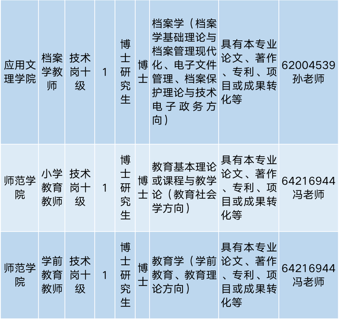 (二)应聘专任教师岗位人员应具有博士研究生学历和博士学位;辅导员岗位人员应具有研究生学历和硕士及以上学位,具有博士研究生学历和博士学位者优先。