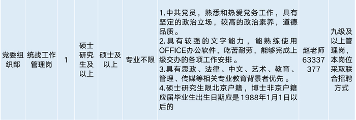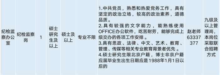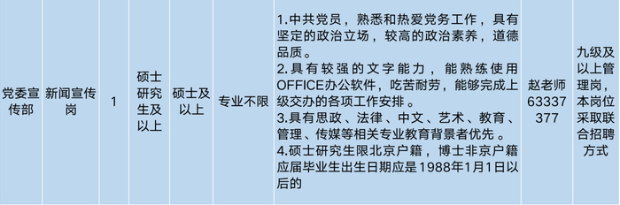 (三)应聘人员应符合招聘岗位的任职资格和条件要求,符合北京市当年申请办理在京就业落户相关政策要求。