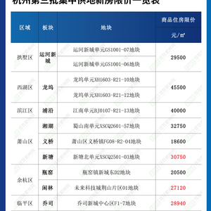 新塘30750元/㎡,乔司28940元/㎡!杭州最新商品房限价出炉