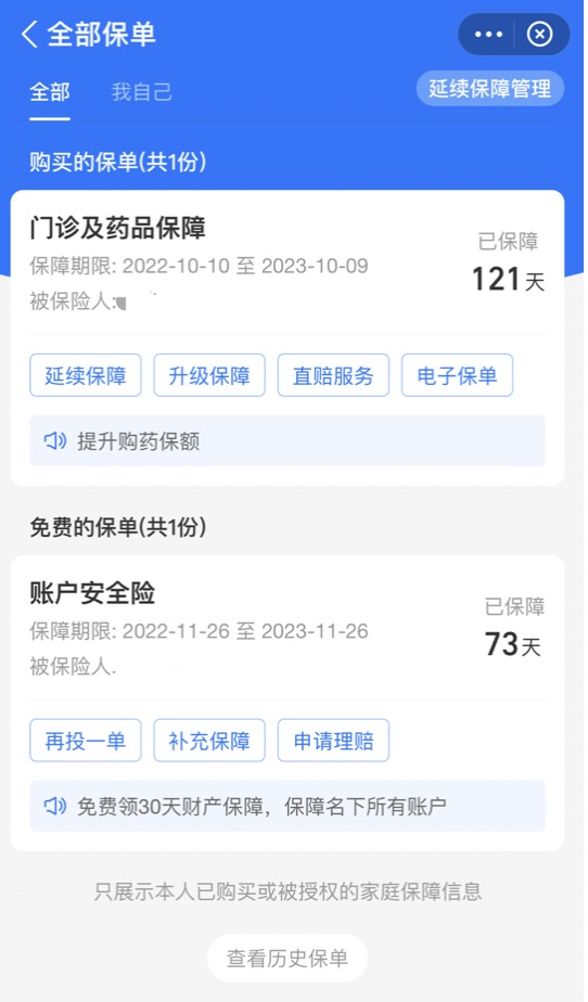 为了弄清扣款详情,琪琪试图找到最初的交易订单,这时,又一个奇怪的事情出现了:在“我的保单”相关的保险名目里,“宠物保险”也不见踪影。绕了半天,她才在“蚂蚁宠物”小程序里才看到了这笔保单的详情:投保后,宠物可享受每月200元的医疗保障额度,宠物看病、买药、护理等均可报销,额度也被清晰地标示在首页,不过,宠物一栏却空空如也,“没有宠物,这个保险是保障谁呢?”琪琪仍旧摸不着头脑。