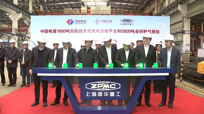 今天上午,振华重工为世界500强企业——中国电建集团建造的1600吨自航自升式风电安装平台和3600吨全回转起重船在南通振华重装启动建设,这也是振华重工与中国电建在海上风电和海工核心装备领域的首次合作。