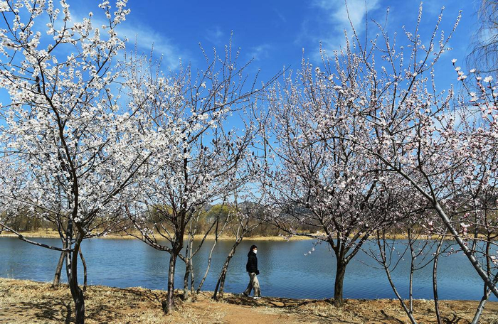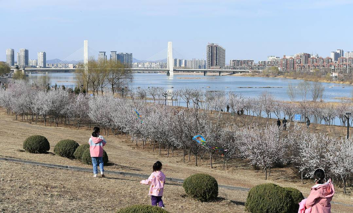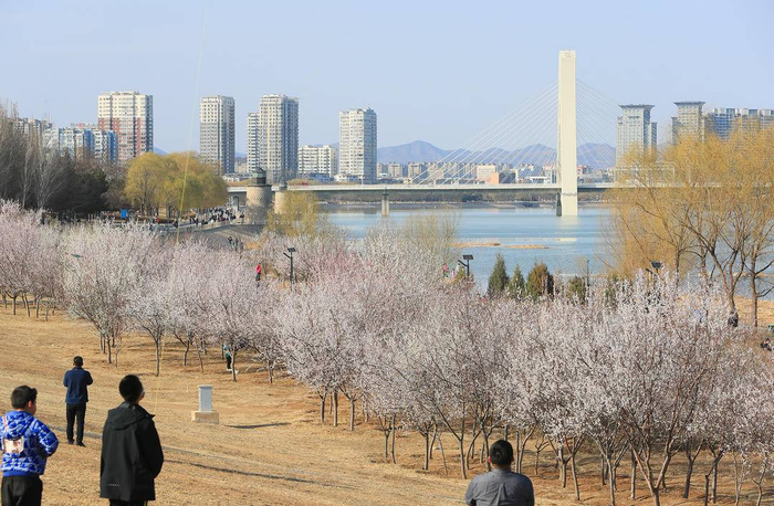 阳春三月,春光明媚。3月26日,记者在朝阳市大凌河风景区看到,在清澈河水和湛蓝天空的衬托下,一排排渐次开放的桃花芬菲烂漫、耀眼迷人。蜜蜂在花朵间飞舞,游人在花海中穿梭,生态优美的大凌河风景区如诗如画,美不胜收,令人陶醉。(辽宁日报特约记者 仇一军 摄)