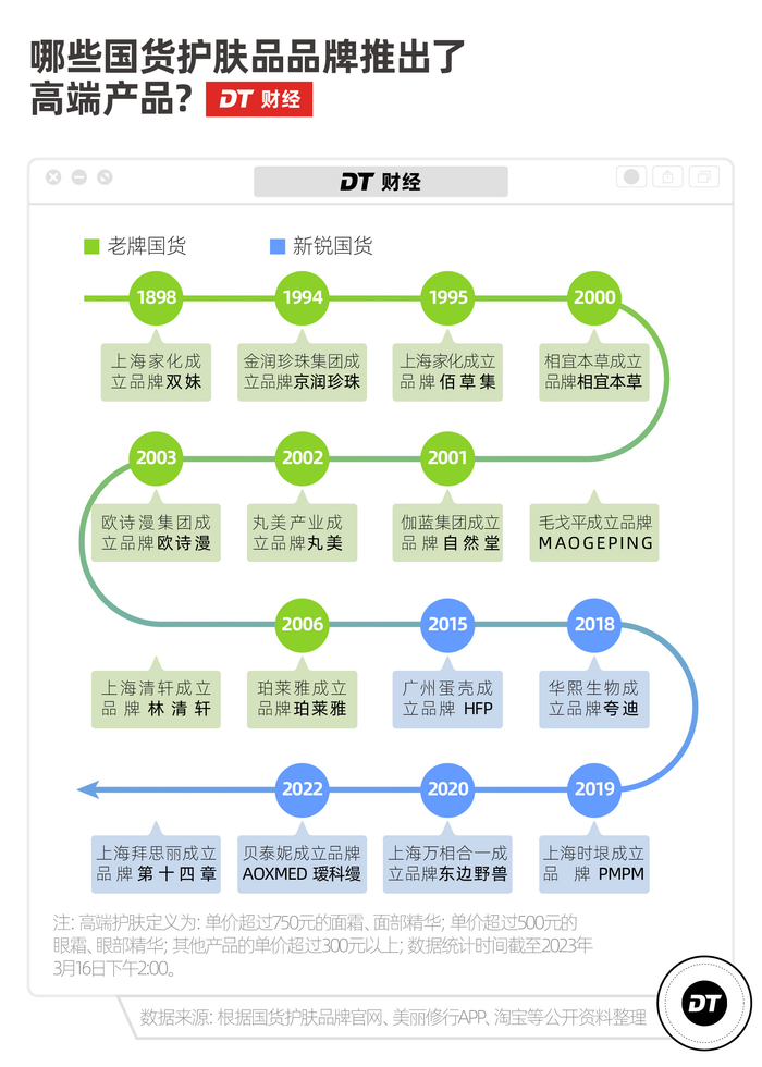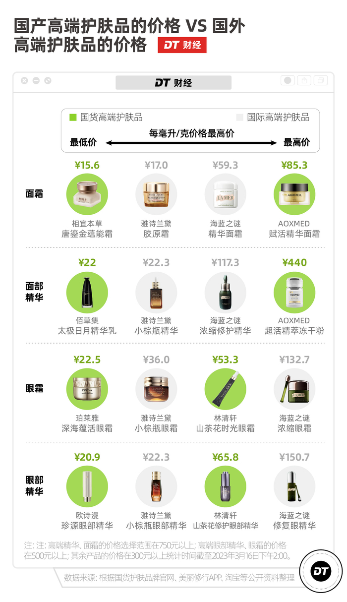 按照这一划分标准,DT财经整理出目前已经上市的国货高端护肤品,共计47款。