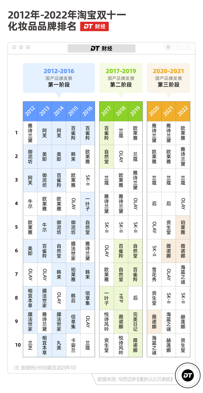 淘宝双十一热销榜单在一定程度上记录了国货护肤品牌的变迁。