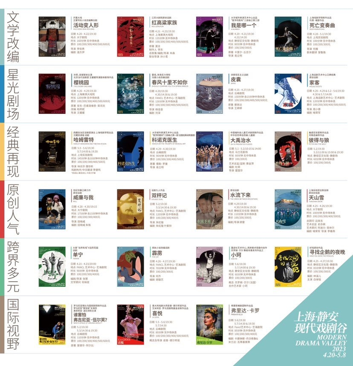 4月20日-5月8日,23部剧目分别在大宁剧院、美琪大戏院、上海话剧艺术中心、艺海剧院、云峰剧院、马兰花剧场、静安区文化馆静剧场等剧院轮番上演。