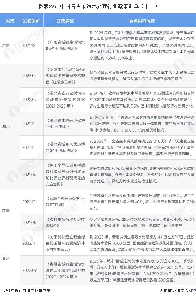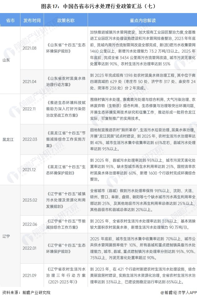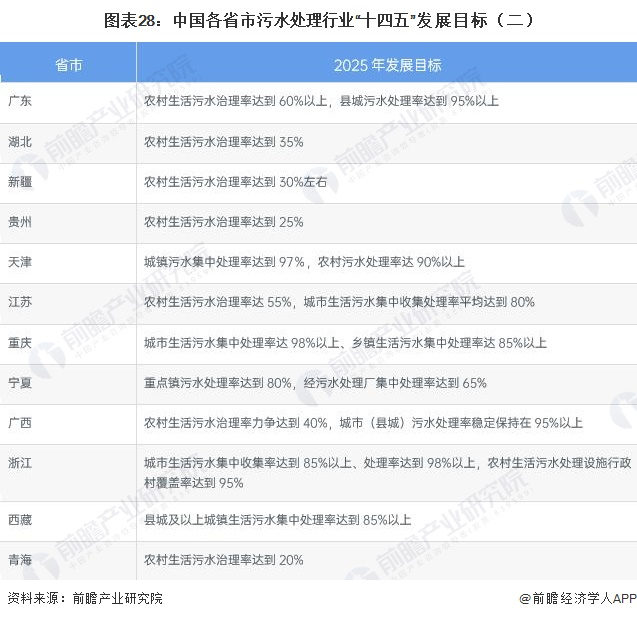 ——各省市污水处理行业发展目标解读