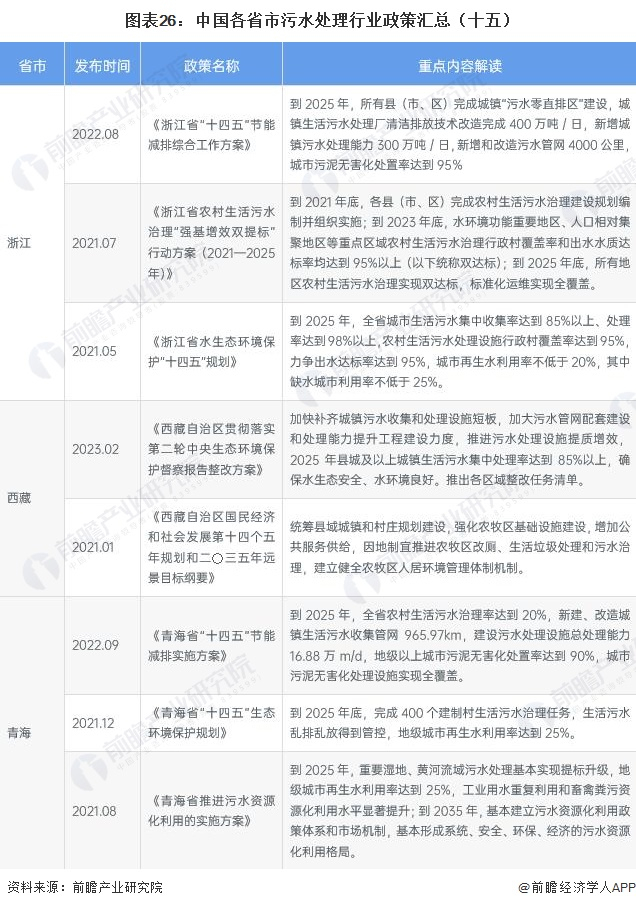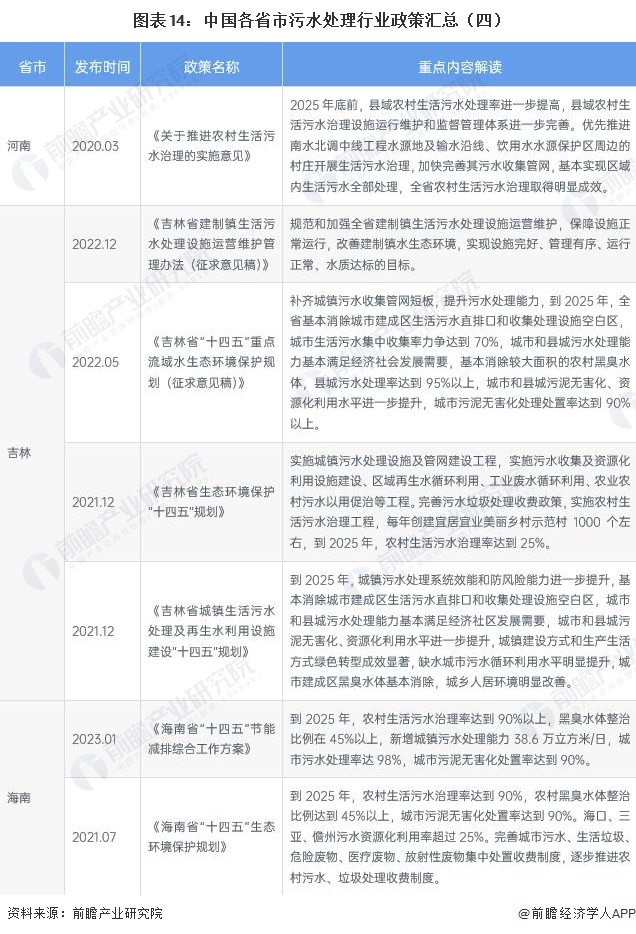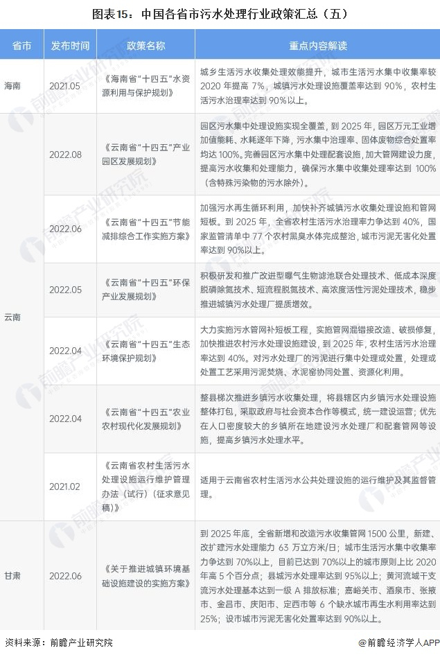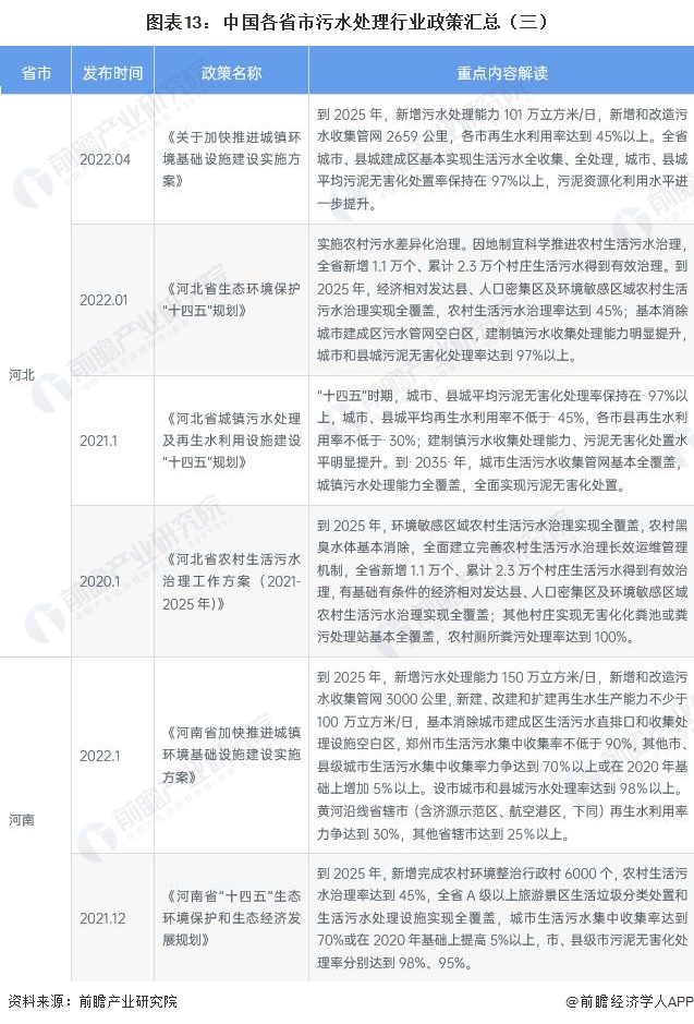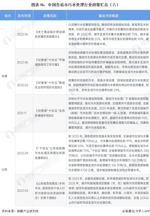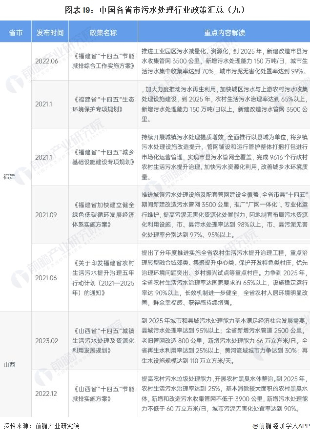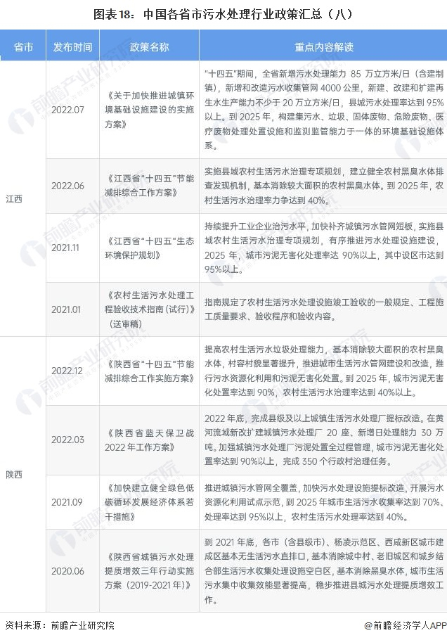 ——各省市污水处理行业政策汇总
