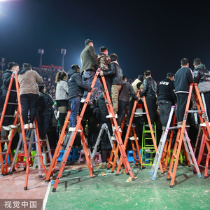 “村BA“决赛现场,观众为看比赛不惜爬上梯子;图片来源:视觉中国
