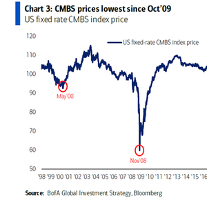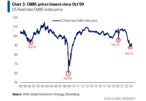CMBS(Commercial Mortgage Backed Securities,商业房地产抵押贷款支持证券) 息差升至2020年5月以来最高,CMBS价格降至自2009年10月以来最低水平。