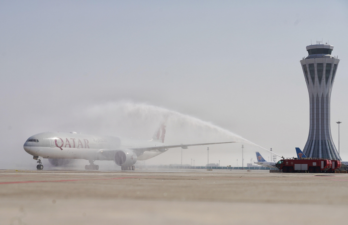 3月26日下午,卡塔尔航空QR893航班(北京—多哈)平稳降落北京大兴国际机场,标志着疫情以来中卡两国首都之间的客运航班服务正式恢复,而卡塔尔航空也成为首家开通直飞北京大兴国际机场的中东航空公司。据悉,该航线的每日航班将由波音777-300ER机型执飞。