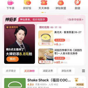 而对于消费者端,消费者看到的不再是店铺列表,而是限时、限量的爆款餐品,消费者可以在页面上会看到具体的餐品,以及丰富多样的视频、图片展现形式。此外,“神抢手”的餐品既可以立即下单消费,也可以提前囤货,进一步降低了消费者交易决策难度。同时,消费者在非就餐时段也能够打开APP,撬动更多非即时性需求。