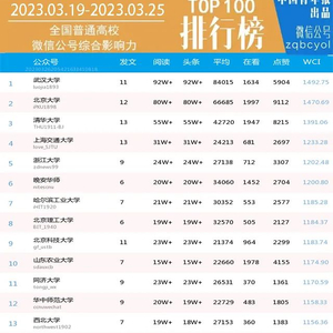 周榜 | 武汉大学,全国第1(普通高校公号 3.19-3.25)| 中国青年报出品