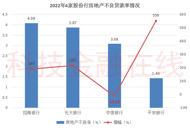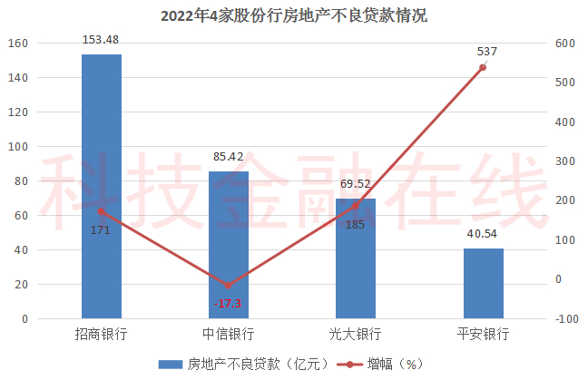 目前,有4家上市股份行披露了2022年年报,其中3家股份行房地产业的不良贷款及不良贷款率出现大幅攀升,涉房业务资产质量显著承压。