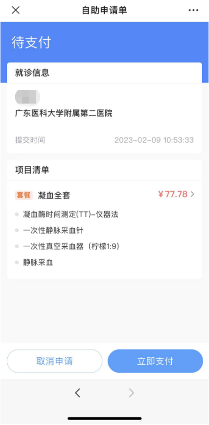 进入自助开单申请页面,选择需要开单的项目,点击【提交】,进入申请单确认页,核对信息无误后点击【确认申请】