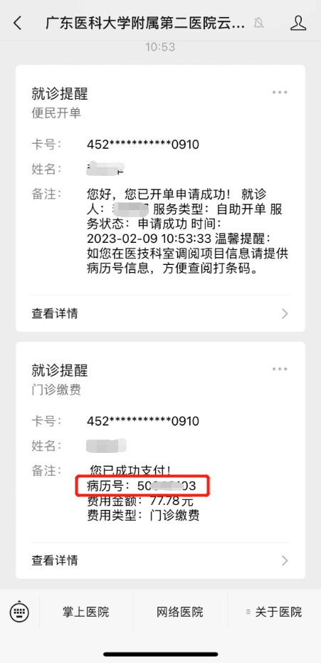 到该院执行检验检查时需提供病历号,方便于项目查阅和打条码。