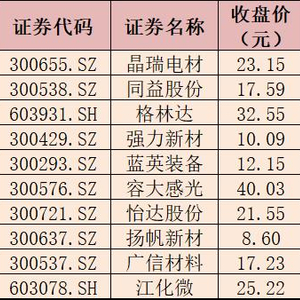 表:3月27日光刻胶板块涨幅居前十个股一览