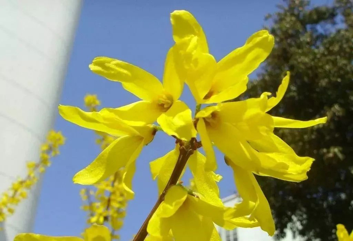 迎春花与梅花、水仙和山茶花统称为“雪中四友”,是中国常见的花卉之一。在秦皇岛,迎春花也比较常见,也许在街边,也许在小区的花坛里,都会偶遇它俏丽的身影。