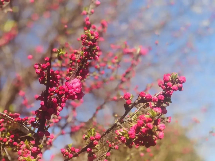 榆叶梅又叫小桃红,因为它叶片像榆树叶,花朵酷似梅花而得名。