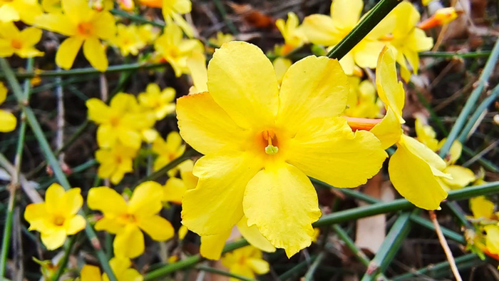 迎春花因其在百花之中开花最早,花后即迎来百花齐放的春天而得名。
