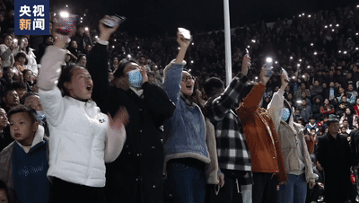 上万名观众,不约而同地打开手机灯光,欢呼呐喊,气氛嗨到爆↓