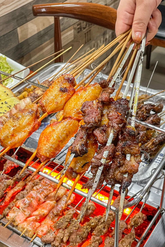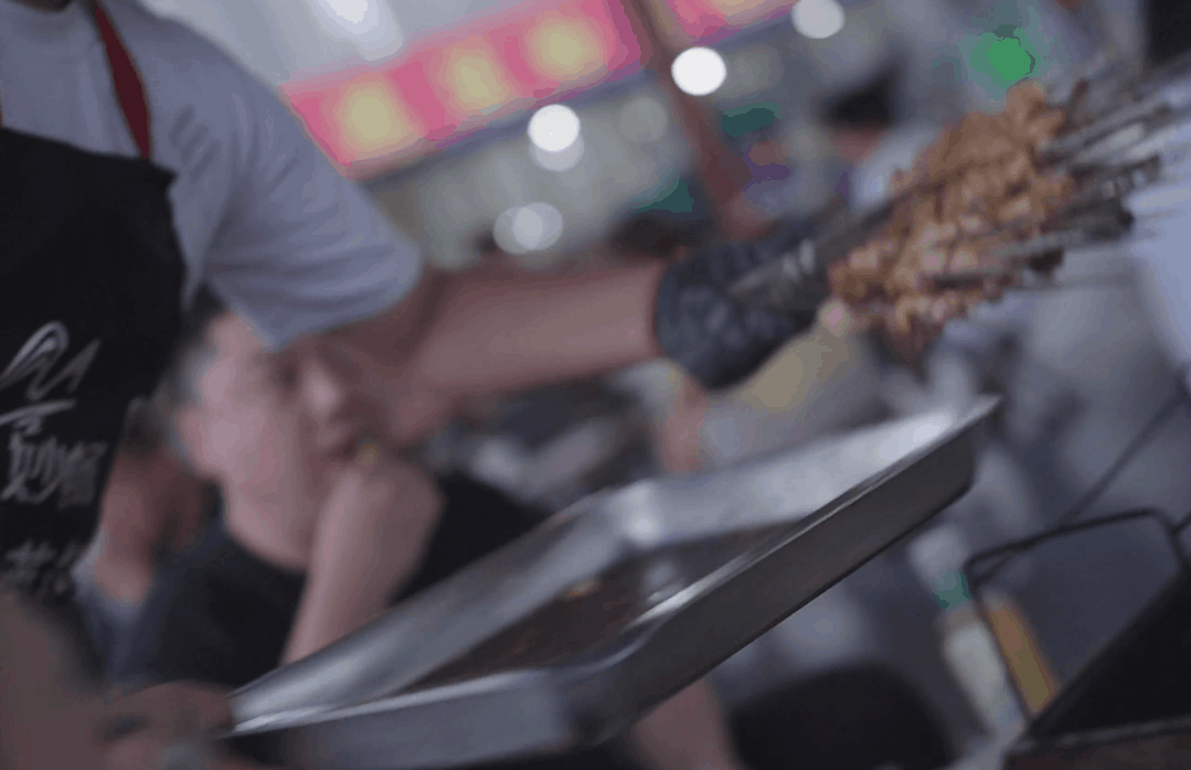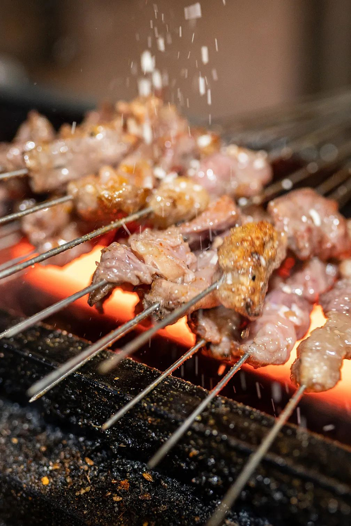 传统济南烤肉的特点是铁签小串,炭火由外烧烤,铁签由内向外加热,内外热力循环使肉质受热均匀,外焦里嫩,小串在烧烤师傅手中抓掂翻滚,香气四溢,烟火弥散充满了这座城市的夜生活。