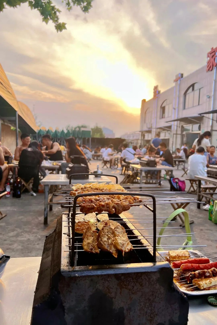 露天吃烧烤,