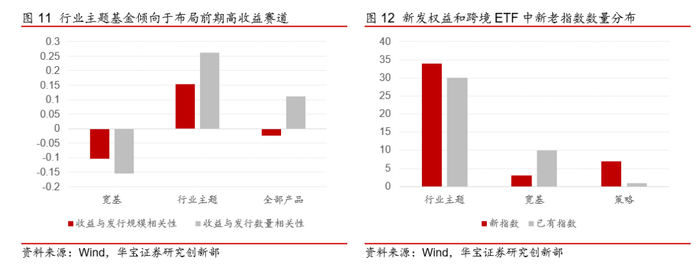 2.2.1. 宽基偏向于挖掘已有指数潜力,行业主题倾向于布局前期收益较高的新指数