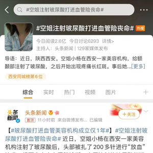 3月27日,“空姐注射玻尿酸打进血管险丧命”的话题登上热搜,涉事医生却“凭空消失”。近年来,注射玻尿酸致残、失明等恶性事件层出不穷。医生的技术水平以及资质与玻尿酸安全注射息息相关,除消费者在进行医美项目要擦亮双眼外,打击医美黑手需要监管和全行业的努力。
