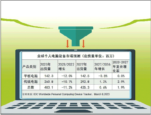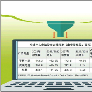 而互联网数据中心IDC最新预测称,2023年全球个人电脑和平板电脑出货量将达到4.031亿台,低于IDC全球季度个人计算设备跟踪报告(IDC Worldwide Quarterly Personal Computing Device Tracker)在2022年12月预测的4.295亿台,同比下降11.2%。也就是说,2023年的销量将低于2019年的水平,不过,IDC预计2024年将是复苏之年,个人电脑和平板电脑的出货量将比2023年增长3.6%,超过大流行前的水平,总销量将达到4.177亿台。