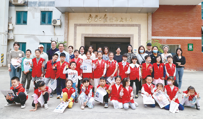 ▶小主播们手拿散发浓墨香的报纸到南宁日报社印发中心参观