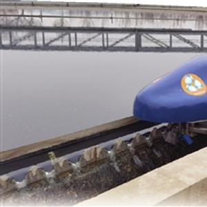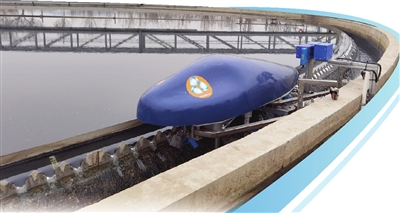“这头‘小海豚’是我们自主研发的清洁机器人。”郭贺指着一台状如海豚的蓝色机器说,“以前‘二沉池’的清洁靠人工,人站在水里用刷子刷池壁,费时费力。现在‘小海豚’用时短,清洁效果还好。”果然,人工清洁的石面看不到水泥本色,上面还有青苔。机器人清洁过的石面,如同水磨石一般。“这些池子运行9年了,机器人投入使用还不到一个月,就达到了这样的效果。”