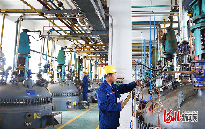 3月23日,位于威县高新区的河北利江生物科技有限公司工人在食品级树脂车间操作设备进行生产。