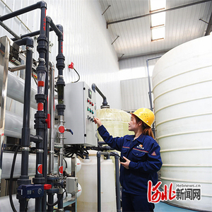 3月23日,位于威县高新区的河北利江生物科技有限公司工人在特种阴离子交换树脂车间巡检。