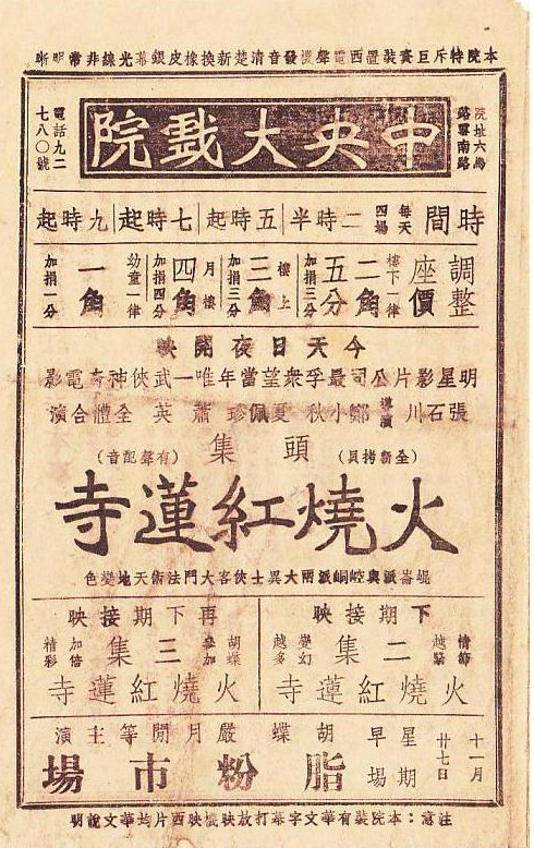 1928年5月13日,《火烧红莲寺》在上海中央大戏院首映,形成了“万人空巷,争先往观,收入一丰”的火爆场面,当时的影院每天连映4场,依然一票难求。